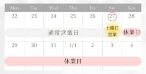誠に勝手ながら、下記期間は年末年始休業のため、お休みいたします。